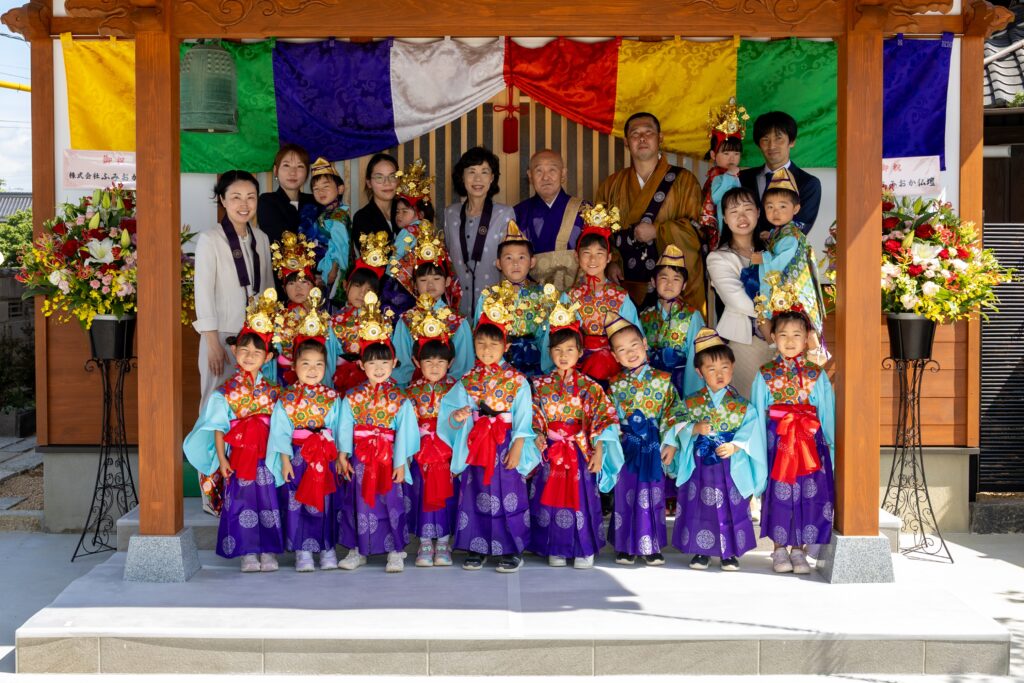 令和7年7月12日(土)落慶法要並びに特別記念護摩に際しまして、大学院幼児園のお子様19名による稚児行列を執り行いました。暑い中、みんながんばって歩いてくれました。これからも元気でたくましく育ちますようご祈念申し上げます。